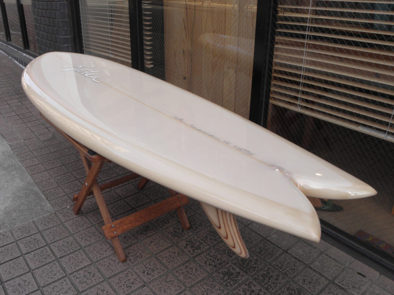 このKK FISHはオーダーボードです。ボトムのホワイトのKKロゴがいい感じです。ストックは、5’8”が来週に入荷する予定です。