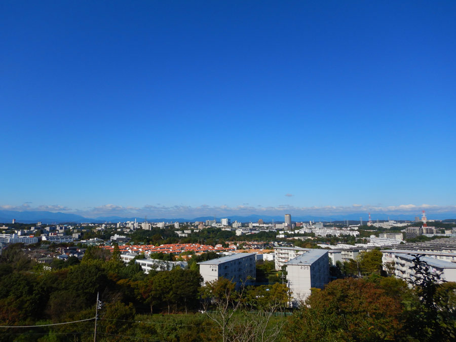 多摩ニュータウンを見渡しながら、しっかり腰を落としてスクアット。今朝は特別、空が青い。100回くらいでモモがプルプルしてきますが、気持ちがいい。
