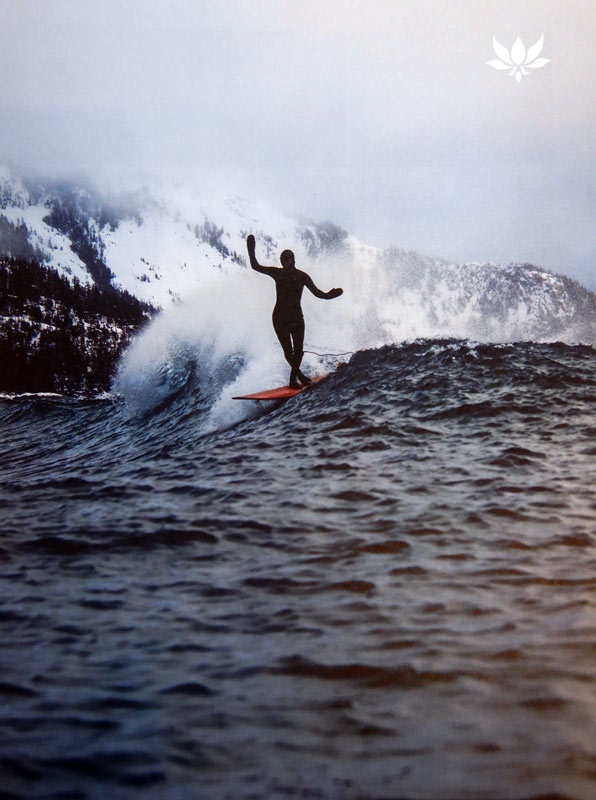 AXXE CLASSICの2021年秋冬カタログが届きました。アラスカの海でステップしているのは、ライダーのアナ。驚くのは、氷点下の海で彼女が着ているのはドライスーツではなくてセミドライスーツということです。