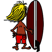 緩い斜面を滑り出したボードの上に立って、波を見ながら真っすぐ滑って行き、波が立ちあがって来るのを待ちます。波が立ち上がって来たら、やおらステップバックしてボードの向きを変え波のフェイスを滑り出す。
