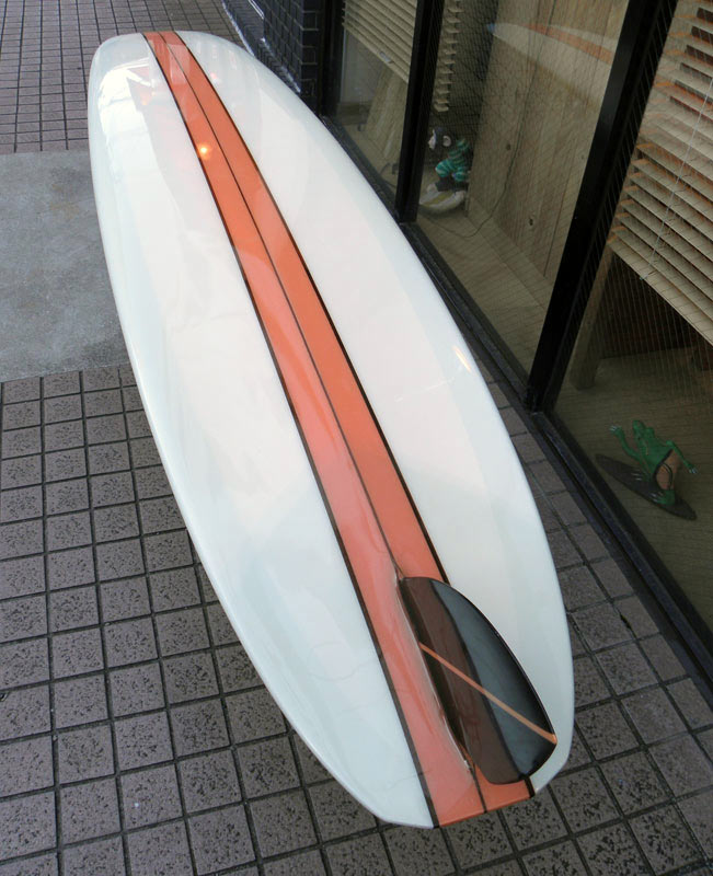 思い出してみればこの手のシェイプは当時、たくさん作っていました。これは自分で乗っていた、6’2”です。