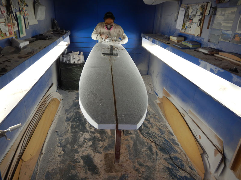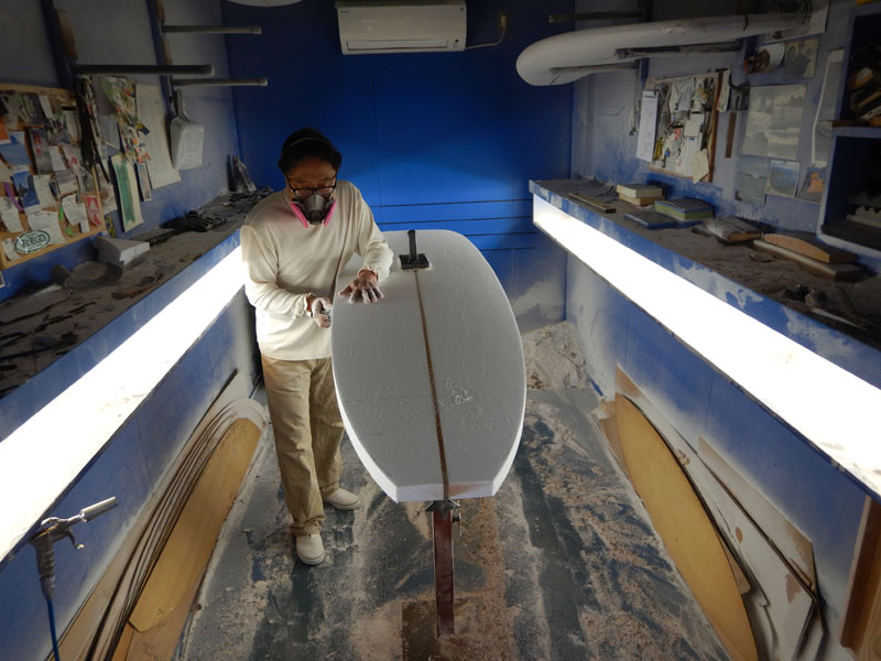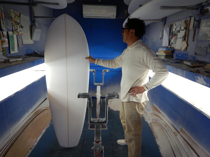 ショップのオープンは2001年。それ以来、ロングボードをベースに、フィッシュ、ボンザー、シングルフィン、ニーボード、パイポとさまざまな種類のサーフボードを作り、試してきました。
