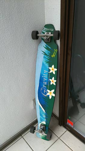 昨日のお休み、波も無いのでいつものトレーニングメニューをひと通りこなして昼飯を食べ、ひと休みしているときにふとスケートやってみようかと思い立ちました。