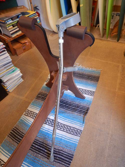 支えが無いと歩けないのでクラッチ杖を借りてきました。こういうやつです。