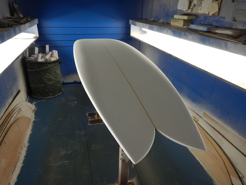 オーダーいただいたロングフィッシュのシェイプが出来上がりました。私のと同じ、8フィートちょうどです。カツカワミナミサーフボードを扱っている湘南のディーラーのオーナーさんはほぼ皆さん長いフィッシュに乗っているようですが評判は良いです(活さん談)。