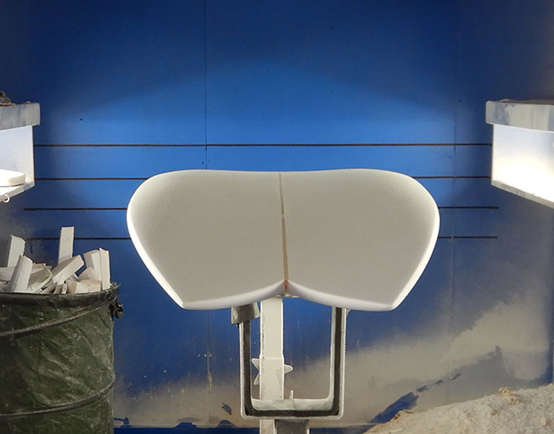 今回はブルー系のティントでラミネートして、フィンはいつものグラスオンです。今日、ラミネートへ出発しています。出来上がりが楽しみです。