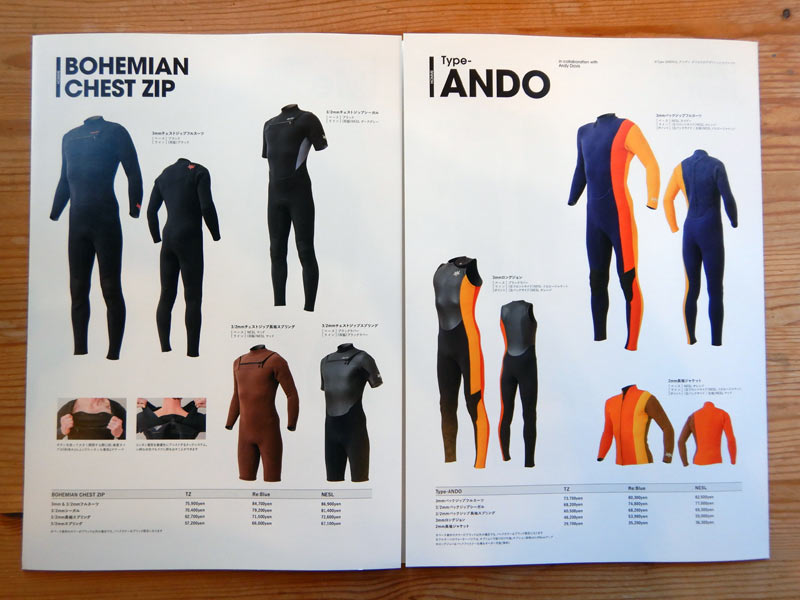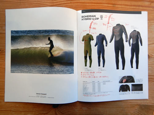自分の資料としてのカタログなので、いろいろと書き込んでいます。オール2ミリではラバータイプとオールジャージの構造が違います。その他は前シーズンとの作りの違いとオプションの備忘メモ。