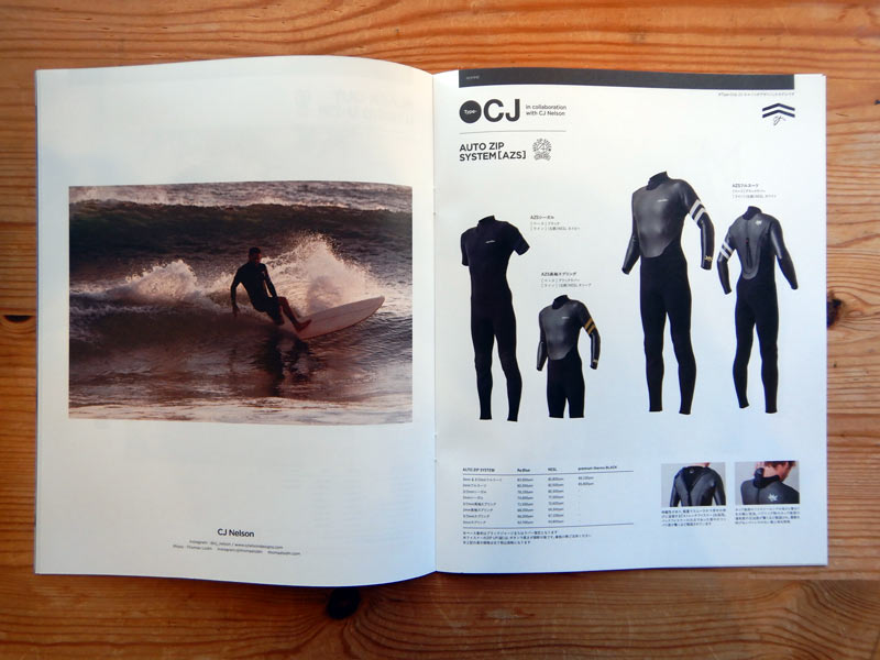 バックジップ(オートジップ)も全てのスタイルに対応しています。こちらも生地厚は、3ミリと2ミリがあります。こちらの写真のサーファーは、CJ・ネルソン。