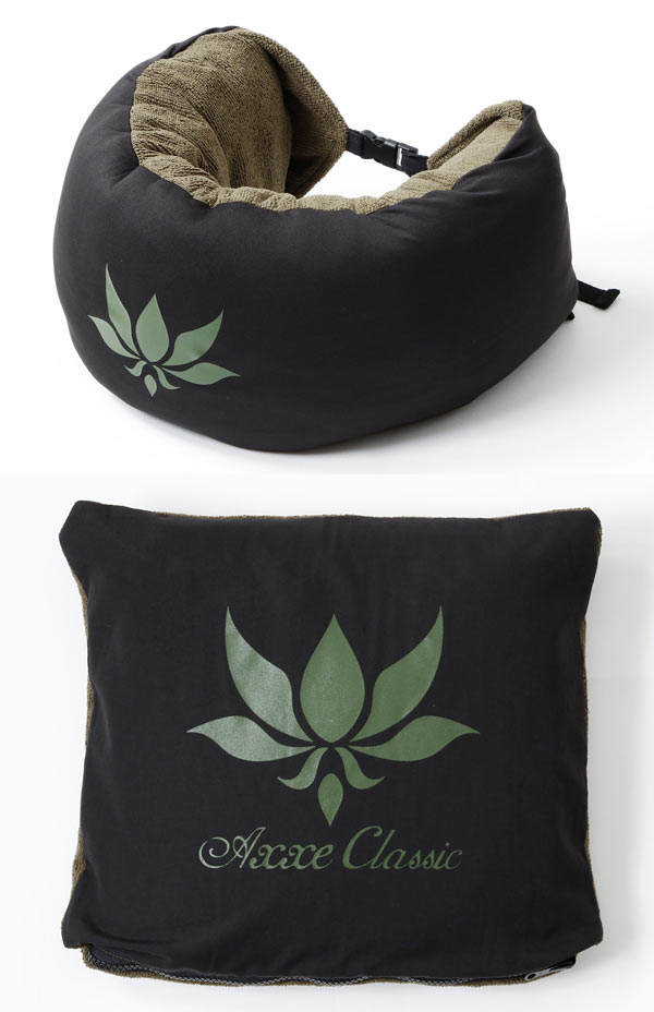 パッカブルでトリップでの車内や機内でピローやクッションとして使える3ウェイポンチョが発売となります。乾きが速いマイクロファイバー製のお着換えポンチョ。AXXE CLASSICのロゴマーク入りです。