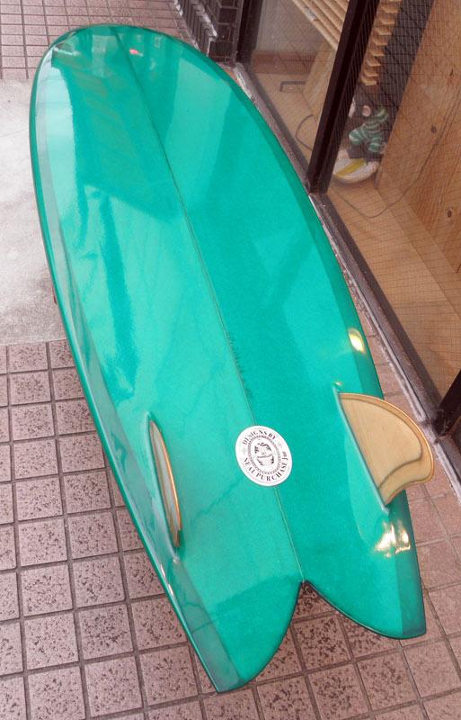 小波乗りの後はシェイプルームへ。足腰に良く効いてくれるもうひとつのボード、ダブルエンダーが出来上がりました。オーダーボードです。