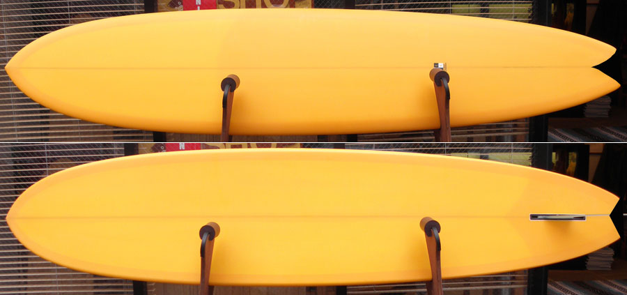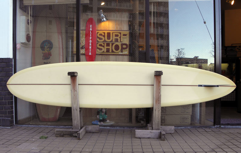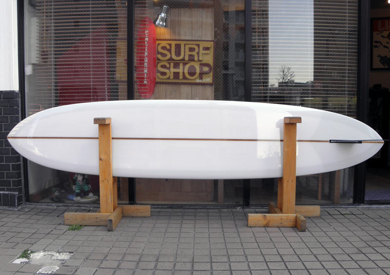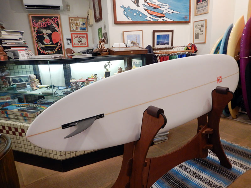 70年代のシングルフィンの時代をリアルタイムでプロフェッショナルのサーファーとして活躍されていた活さんに、当時乗っていたボードで一番調子良かったのを作ってくださいとお願いして作ってもらったのがこのダイアモンドテールのシングルです。