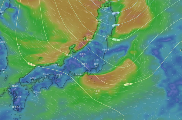 先週末の寒気がもたらしたうねりは無くなってしまいました。等圧線が緩むのと同時に寒さも緩んできました。