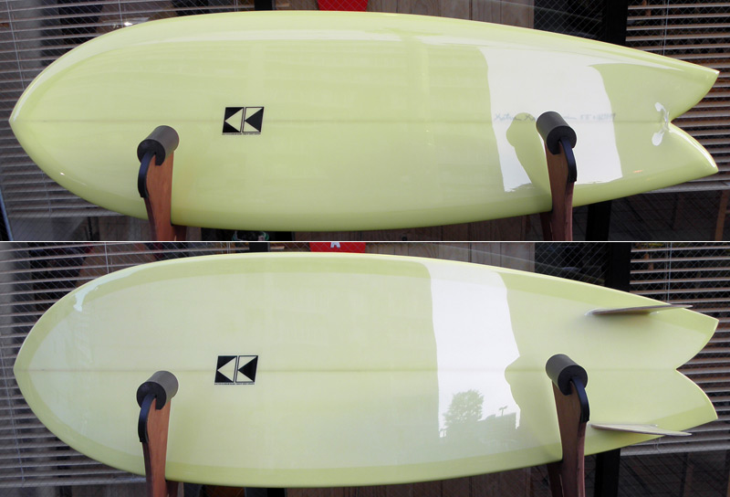 フィッシュを長くしたというよりは、ロングボードのテールをフィッシュテールにして、フィッシュのツインキールを付けたイメージです。