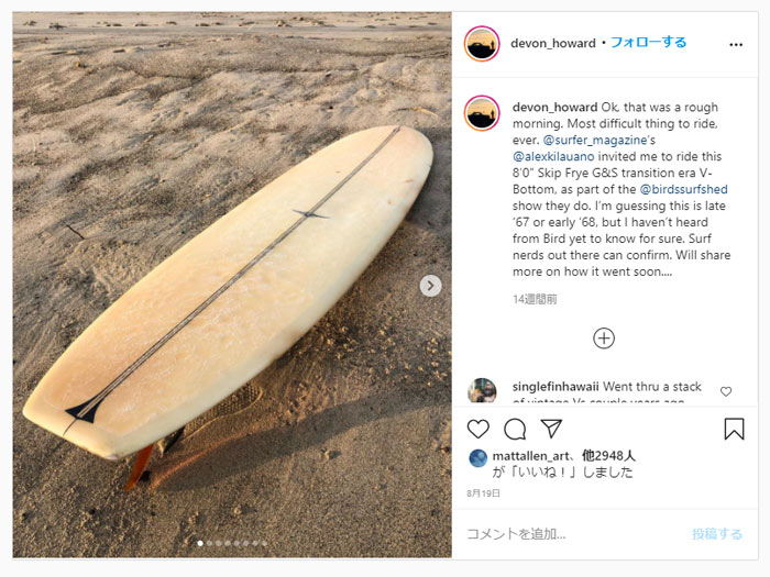 ヴィンテージロングボード(old malですね)というのには特に驚きません。60年代のログを持ち出してきて皆で乗ろうぜ的な集まりはよく耳にすることです。すごいなあと思ったのはもうひとつの vee bottom の方です。