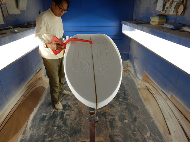 ショップのオープンは2001年。それ以来、ロングボードをベースに、フィッシュ、ボンザー、シングルフィン、ニーボード、パイポとさまざまな種類のサーフボードを作り、試してきました。