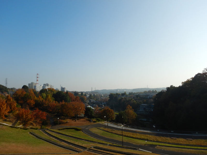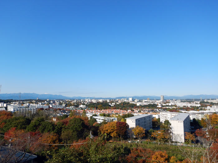 いい天気です。日差しはまだまだ結構強くて、小春日和というよりも小夏日和と言ったほうがしっくりきそうな天気です。見下ろす街はすっかり色づいて、丹沢の向こうには雪で白くなった富士山が山頂をのぞかせています。
