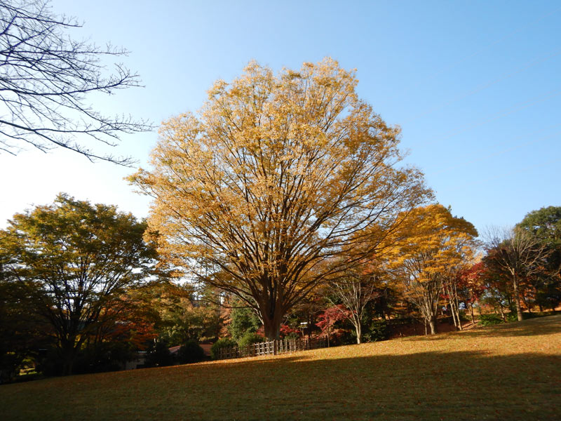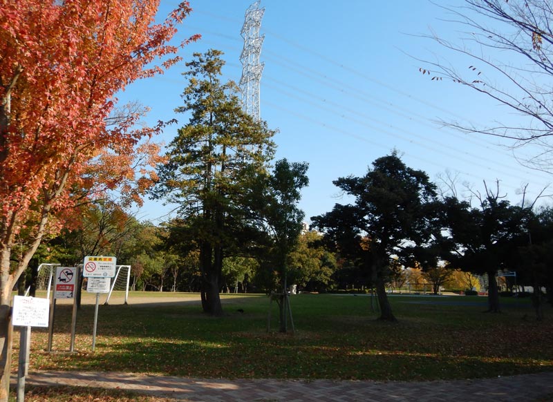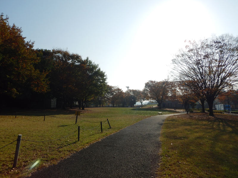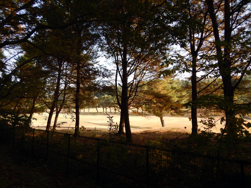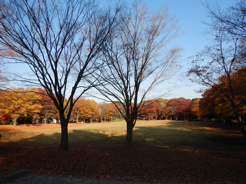 こっちの公園も広いフィールドがあります。冷たい空気と紅葉で気持ちがいい朝です。