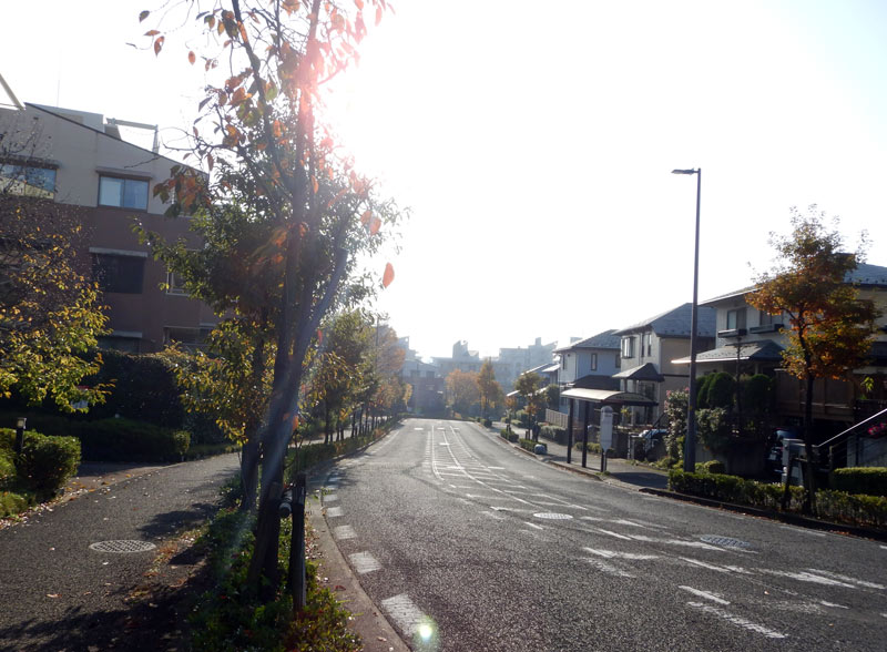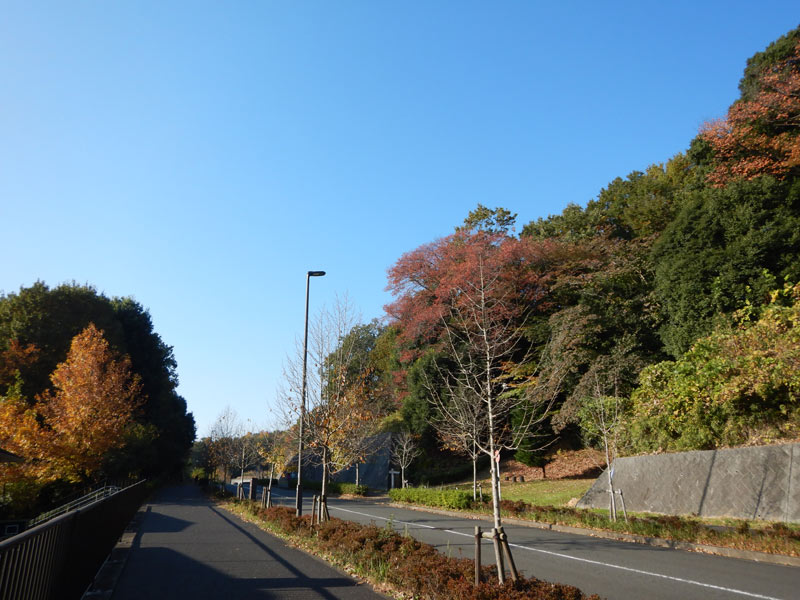 その身体の声が段差や木の根などのギャップが嫌だというので、下に見える多摩ニュータウンに降りて舗装路を走ることにしました。すっかり秋色です。
