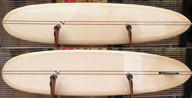 私が乗っていた、11フィートのグライダーはフィッシュテールでした。ボードコントロールはラウンドピンよりも反応が速いように感じたものです。