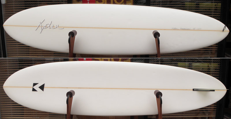 ご覧の通り、KK FISHは幅が広いラウンドノーズに特長があります。最初は(MINIモデルのノーズと同じなので)MINI FISHと呼んでいましたが、いつの頃からかKK FISHと呼ぶようになりました。