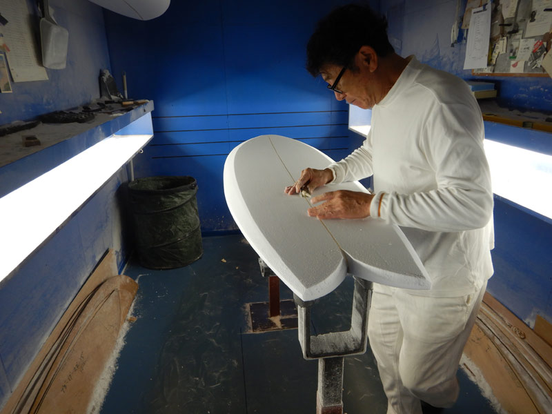 ショップのオープンは2001年。それ以来、ロングボードをベースに、フィッシュ、ボンザー、シングルフィン、ニーボード、パイポとさまざまな種類のサーフボードを作り、試してきました。