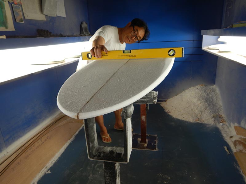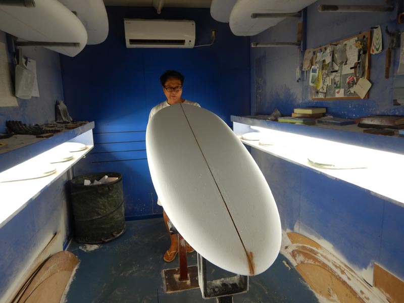 ショップのオープンは2001年。それ以来、ロングボードをベースに、フィッシュ、ボンザー、シングルフィン、ニーボード、パイポとさまざまな種類のサーフボードを作り、試してきました。