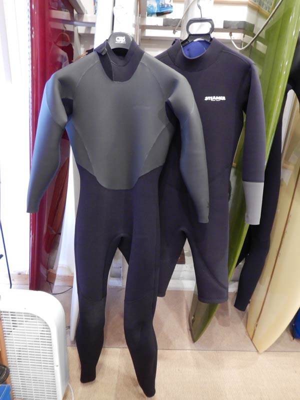 ウェットも準備して、久しぶりに袖を通してみました。AXXE CLASSICの2ミリのオートジップフルスーツとSTEAMERのジャージロンスプです。