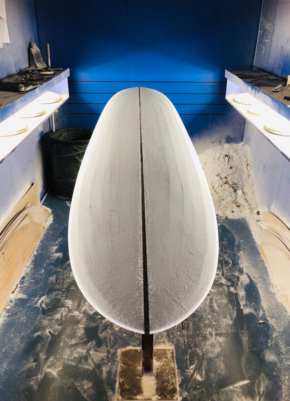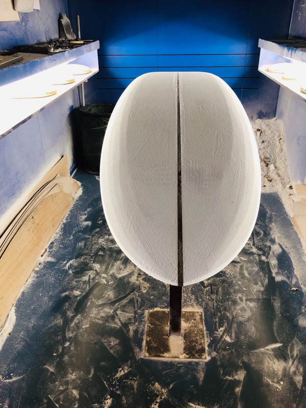 シェイプルームへ行けなかったので、活さんが画像を送ってくれました。オーダーいただいた、ラウンドピンテールのB52は9’4”です。