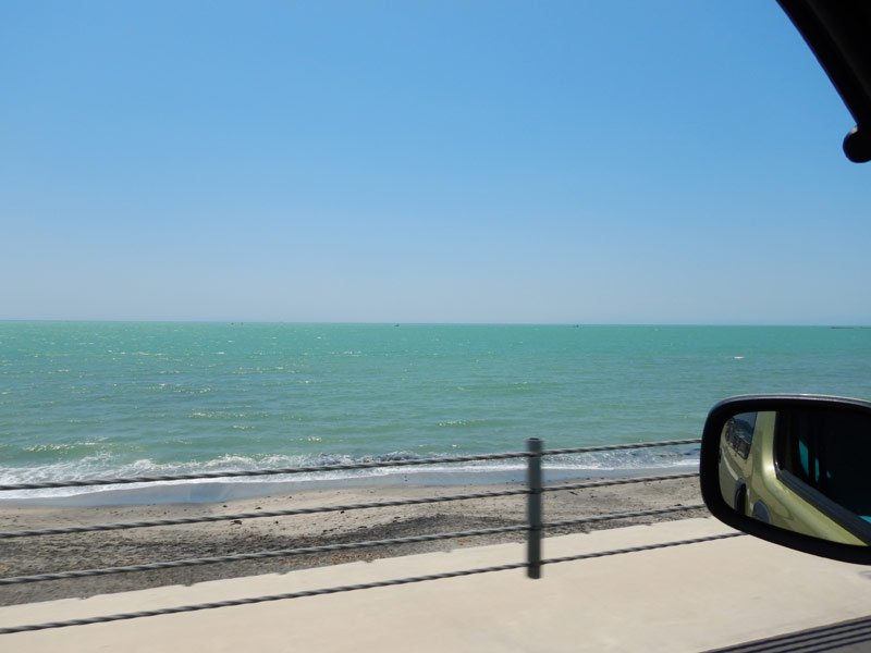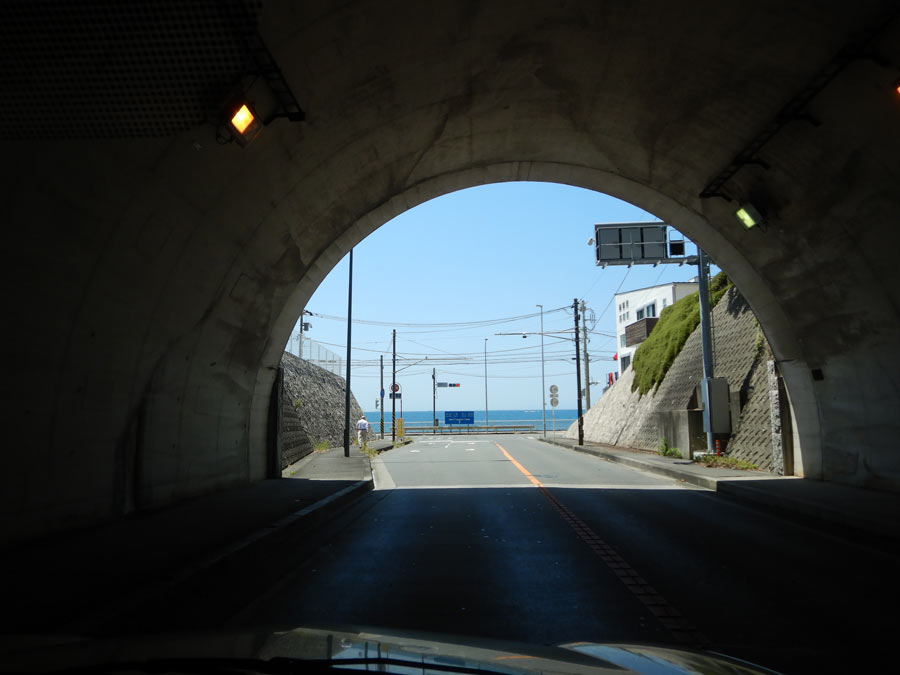 出口の向こうは海。そろそろトンネルを抜け出したいものです。私は右へ折れて、葉山、逗子を通って活さんのシェイプルームへ向かいます。