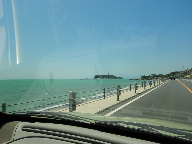 七里ガ浜に入ると、すっかりターコイズグリーンの海です。