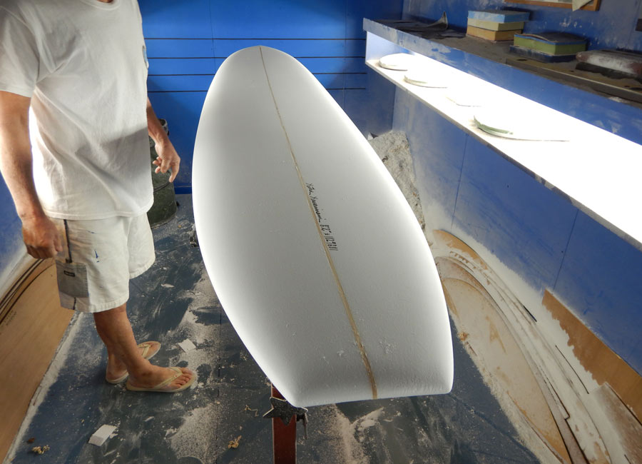 ショップのオープンは2001年。それ以来、ロングボードをベースに、フィッシュ、ボンザー、シングルフィン、ニーボード、パイポとさまざまな種類のサーフボードを作り、試してきました。