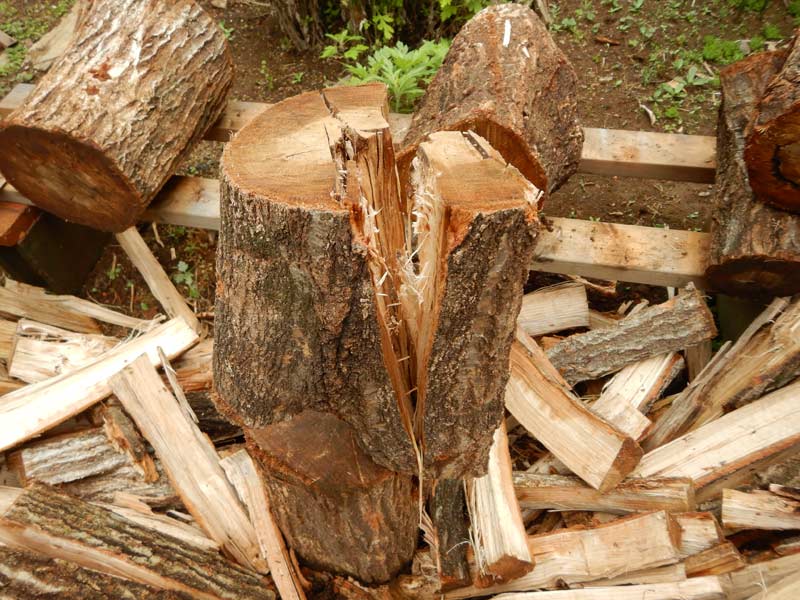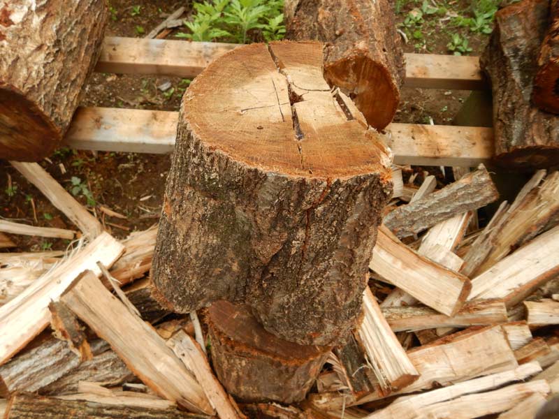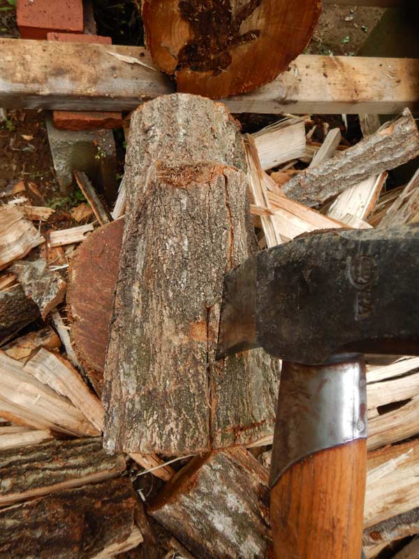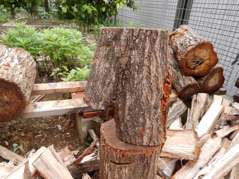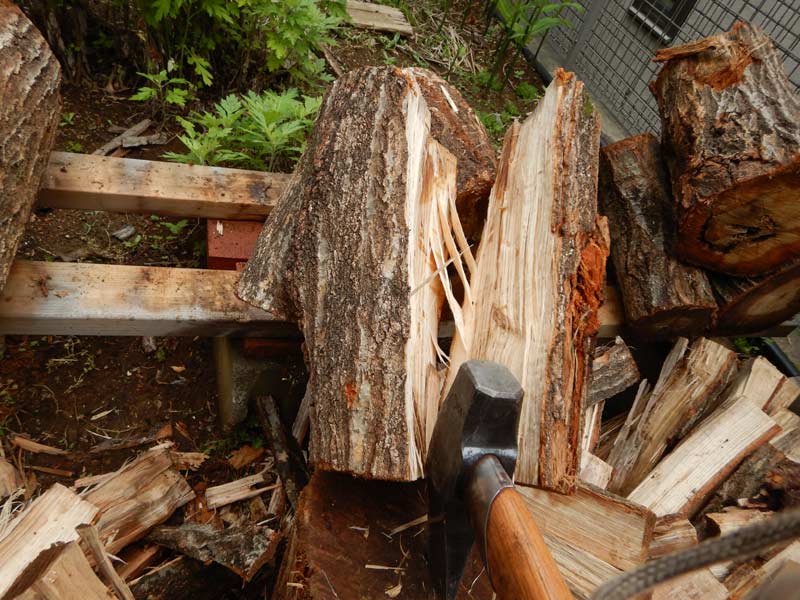 相手は「木」です。ホームセンターの製材された木とは違うので、いろんな部分があります。例えばこういう枝分かれした部分。枝分かれの部分はチカラでは割れません。それなりに技術が必要です。