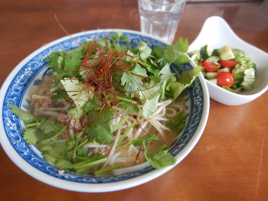 散々歩き回ったあとは(15キロくらい歩いちゃいます)家へ戻って昼飯です。食事にも手は抜きません。タイビーフンを使って、モヤシとひき肉で汁有りビーフン。レモングラスの代わりに庭のレモンをまるまる一個、絞ります。