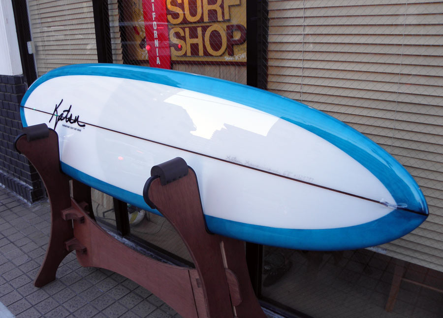 カツカワミナミサーフボードというと、BOOGIEやKK FISHなどボリュームがあるシェイプのイメージが定着していますが、南の島から戻られたばかりの頃はこういうパッキパキのシェイプでした。