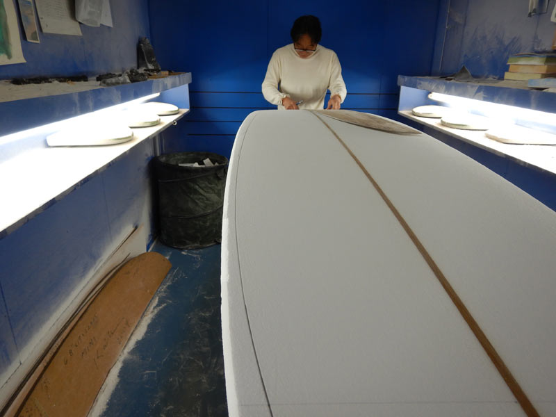 ショップのオープンは2001年。それ以来、ロングボードをベースに、フィッシュ、ボンザー、シングルフィン、ニーボード、パイポとさまざまな種類のサーフボードを作り、試してきました。