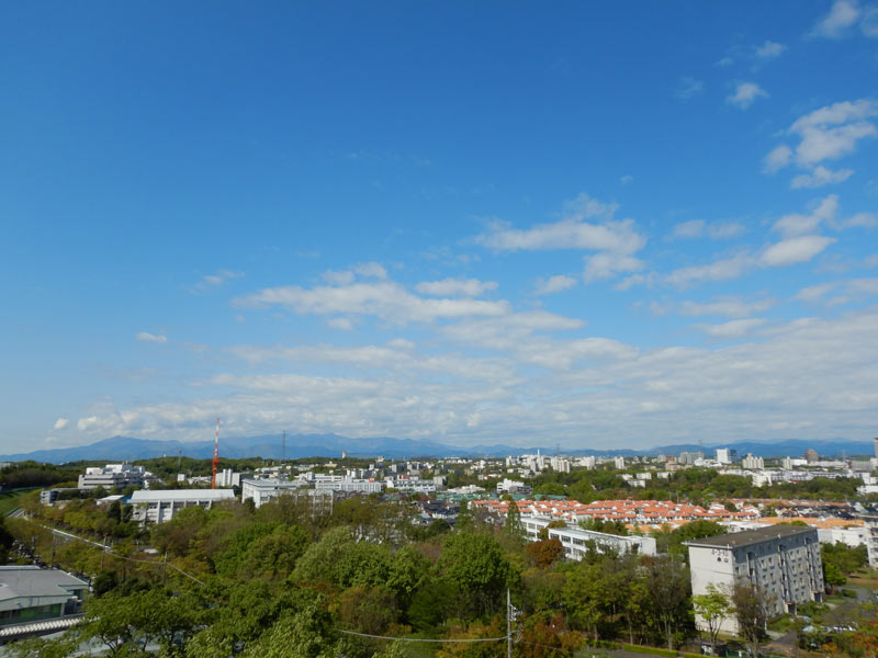 遠くに遥か遠く、上越国境の谷川連峰が白く見えています。冬の良く晴れた日でもここまで見えるのは珍しいです。右手にすそ野が少し見えているのは赤城山。もう少し右手には日光の山々がくっきりと見えていました。