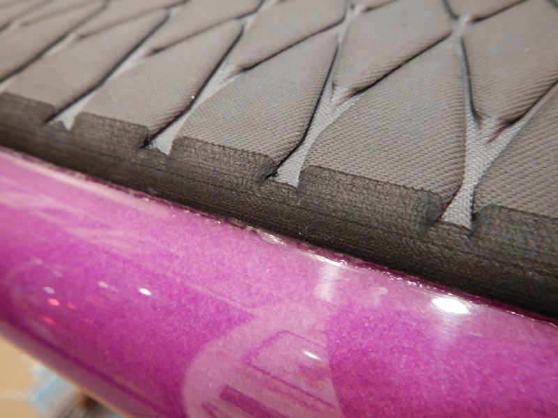 COVE PADも初めてでした。パークスよりもトラクションは強いですが、ショートボードに貼っているようなパッドほどではなく、使いやすそうです。パッドの端の部分がなんとなく浮いているような感じなので、ウレタンを溶かさない接着剤で貼り付けちゃいました。