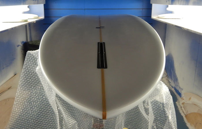 ボードを見ていて思い出しましたが、9フィートで白木のストリンガーにクリアカラーは、波乗りを始めるときに作ってもらったロングボードと同じです。原点回帰ですね。