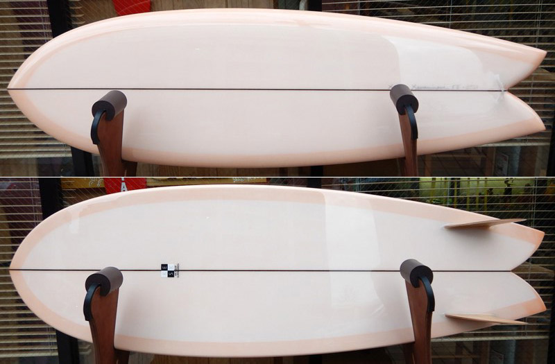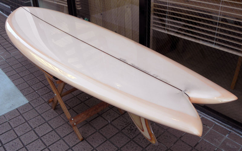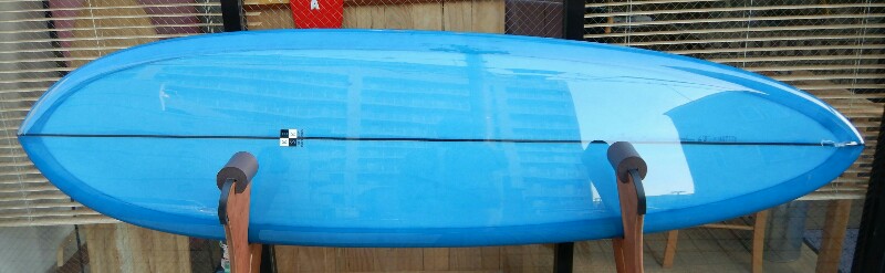 ノーズにボリュームがあるので、5’8”でも浮力あります。おっさん向けに5’8”ばかり作ってますが、元気が良い方、短い方のでも全然平気という方には5’6”をおすすめします。オーダーで作りますので相談してください。