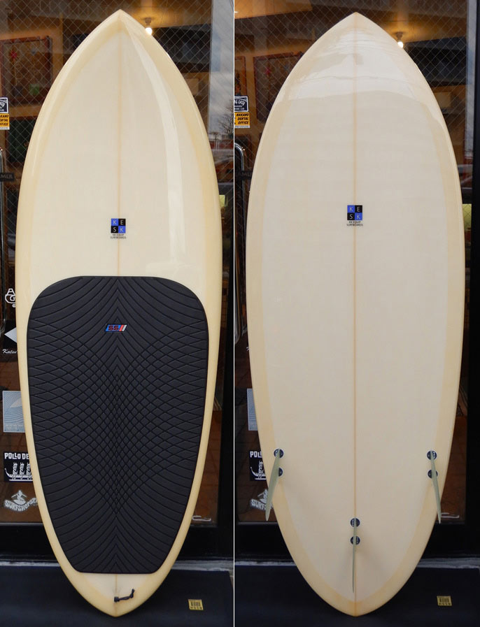 KK FISHが入荷しました。サイズは、5’8”x 21” x 2”5/8。ストックボードです。カフェラテティントの予定でしたが、少し赤味が強くなってどちらかと言えばミルクティーティントくらいです。どっちでもいいんですが、キレイな色に出来上がりました。