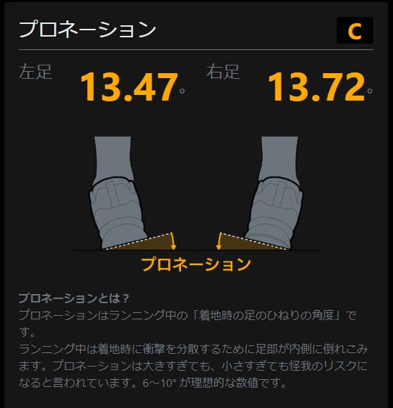 これだけでは、この後の足の動きまでは判りませんが、入角が大きいのでその勢いでオーバープロネーションになってしまっている(=筋膜炎の原因になっている)可能性が大きいとは想像はできます。