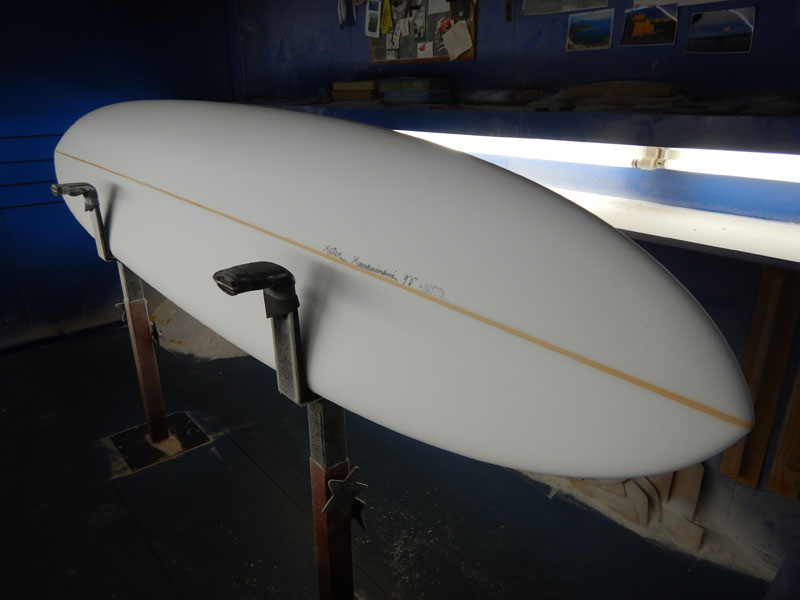 ショップのオープンは2001年。それ以来、ロングボードをベースに、フィッシュ、ボンザー、シングルフィン、ニーボード、パイポとさまざまな種類のサーフボードを作り、試してきました。