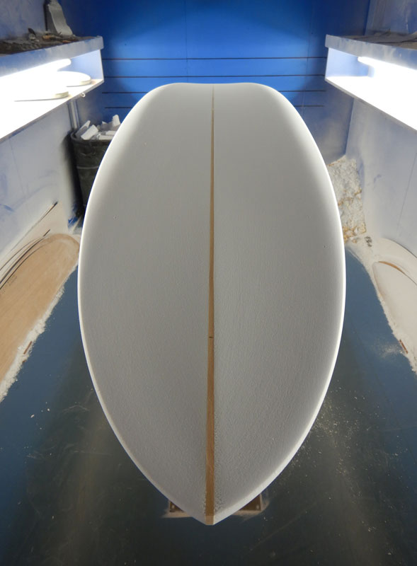 プリモのコンビネーションロッカーのことはこのブログで何度か書いていますが、このMINIはいったんプリモのボトムを作ってから、その中のスピードを出すためのロッカーに合わせて、フラット~VEEにシェイプしていっています。