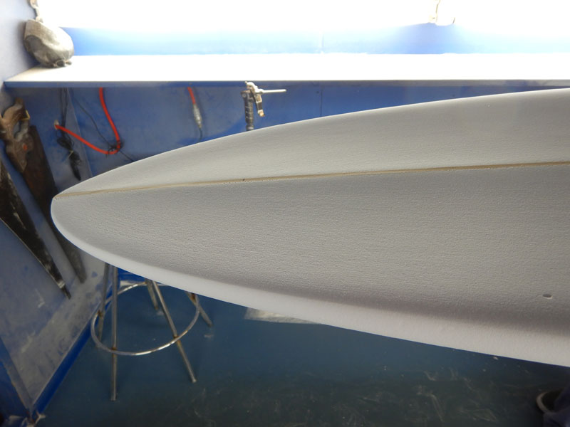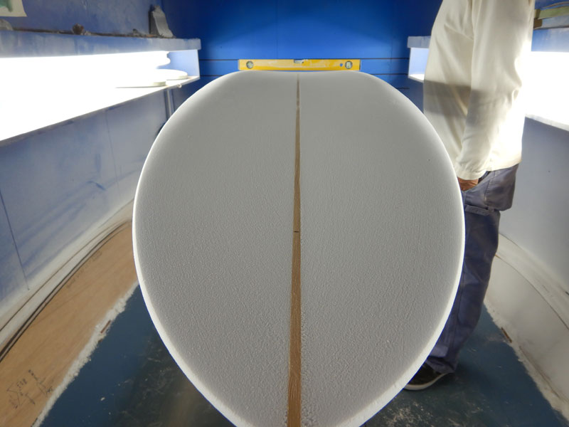 プリモのロングボード、9フィートちょうどのサイズのシェイプが出来上がりました。かつて、美しいラインのラウンドピンテールのロングボードを生み出していたシェイパーがデザインしたブランクスを使って活さんがシェイプしてくれました。