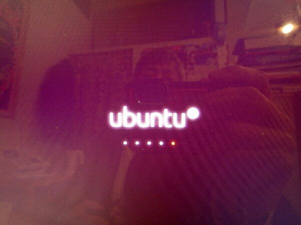 ずっと真っ暗か青一色の画面ばかりだったので、ubuntuが立ち上がったときは嬉しかったです。
