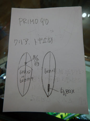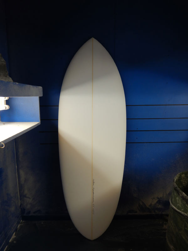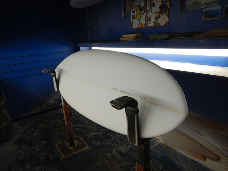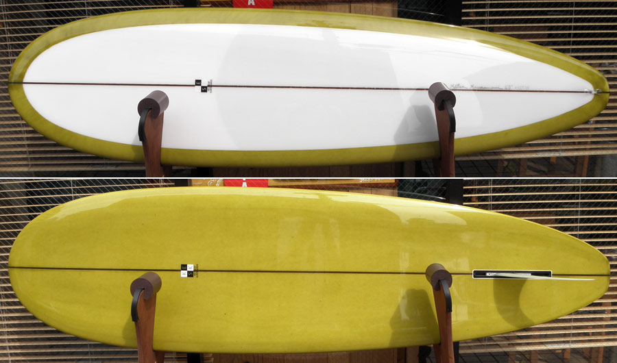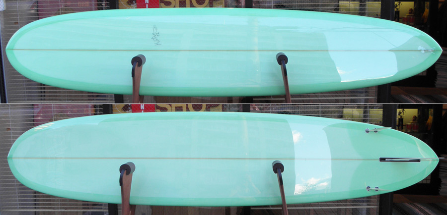 TIKIはこんなオールラウンドタイプのロングボードにも作ることができます。同じアウトラインでシングルフィンももちろんOKです。プリモと同じシェイプか、ノーズコンケーブを入れてライトウェイトのシングルフィンか、どちらでもお好きな方で。