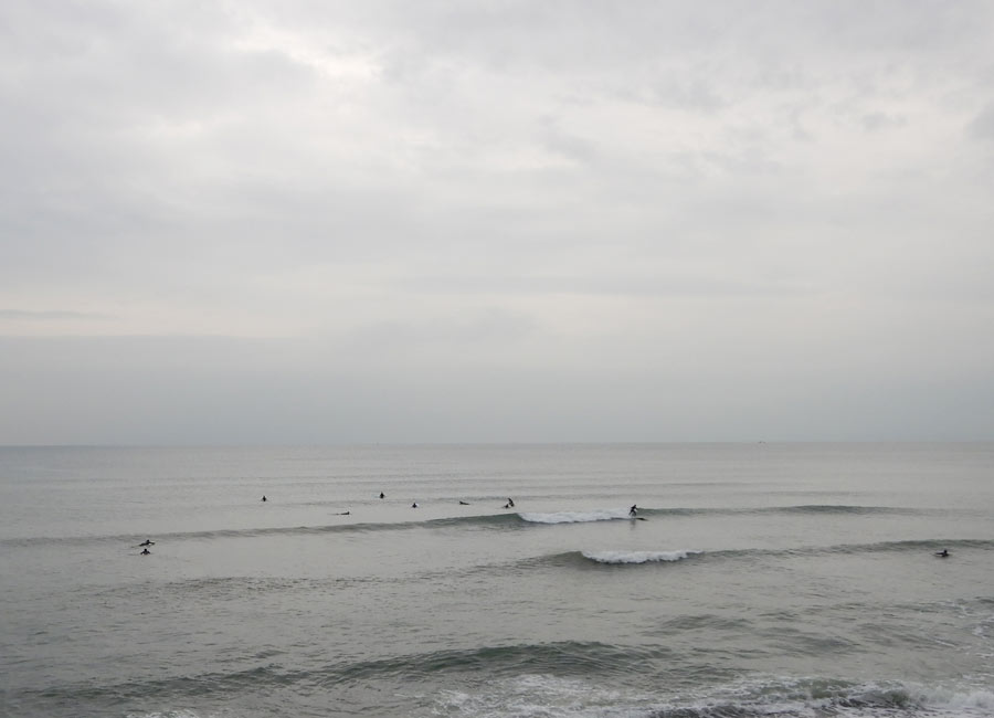 今のところ(9日午後三時過ぎ)まだ、うねりは入ってきていないようです。前線が気になるところですが、明日は朝から波上がっていると思います。相模湾東側は午前9時で波高南東1.4m 周期14.3秒。しっかりとしたサイズですが強めのオフショアに抑えられてファンウェイブかもしれません。