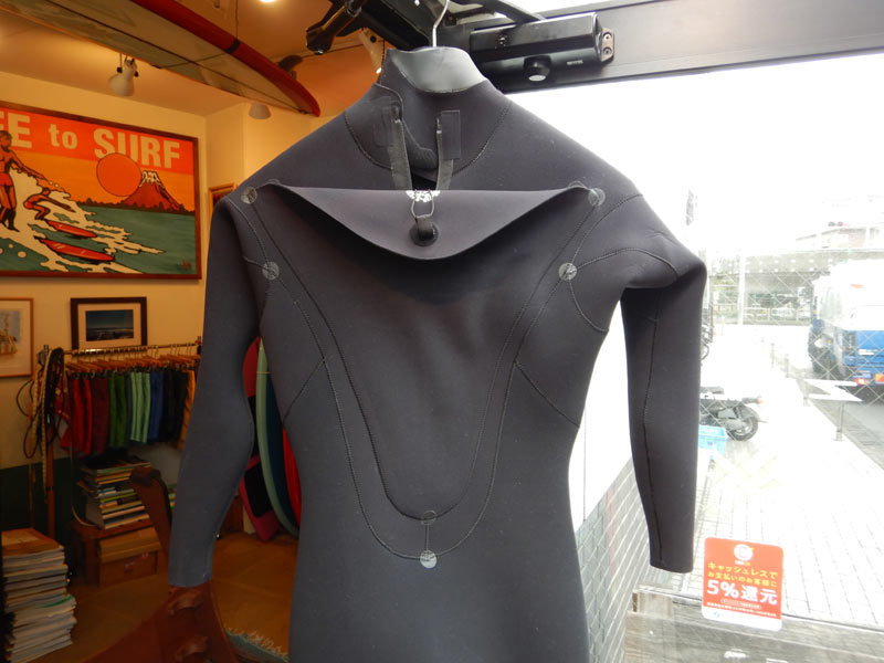 今年の春に登場した、AXXE CLASSICのオートジップシステムなんていうのもあります。これは薄くてオール2ミリです。防水性が高いので、薄いですが保温性が高い高機能なウェットです。