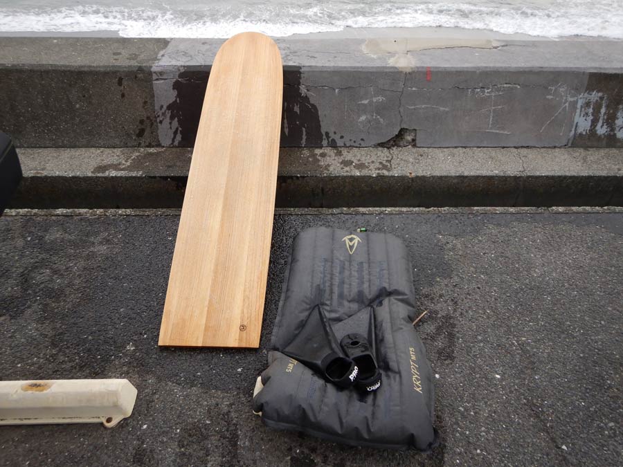 もう1足(というのか?)の方のブレードを短く加工してみようかとも思いますが、わざわざ立ち上がる必要もないような気もします。フィン、自分の好きな形に切っていいんです。サーフマット大王のマーク・トンプソンさんは、ボイトのフィンをフィッシュテール形に切って使ってると昔言ってました。