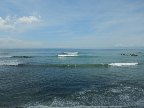 昨日は引いている時間でモモくらいの波が割れてました。ロングボードなら遊べそうですが、珍しく誰も入ってません。